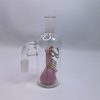 This borosilicate glass ash catcher features a 90 degree angled joint and a percolator that is fashioned to look like a miniature beaker bong.